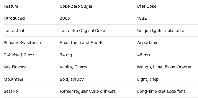 Walk into any grocery store, and you’ll spot them sitting side by side on the shelf—one with a sleek silver can, the other dressed in black. At first glance, they look like they could be twins. But ask any loyal fan, and they’ll quickly tell you there’s a world of difference between Diet Coke and Coke Zero Sugar.